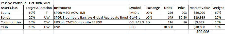 In conclusion here it is my initial balanced passive portfolio for $100k notional amount: